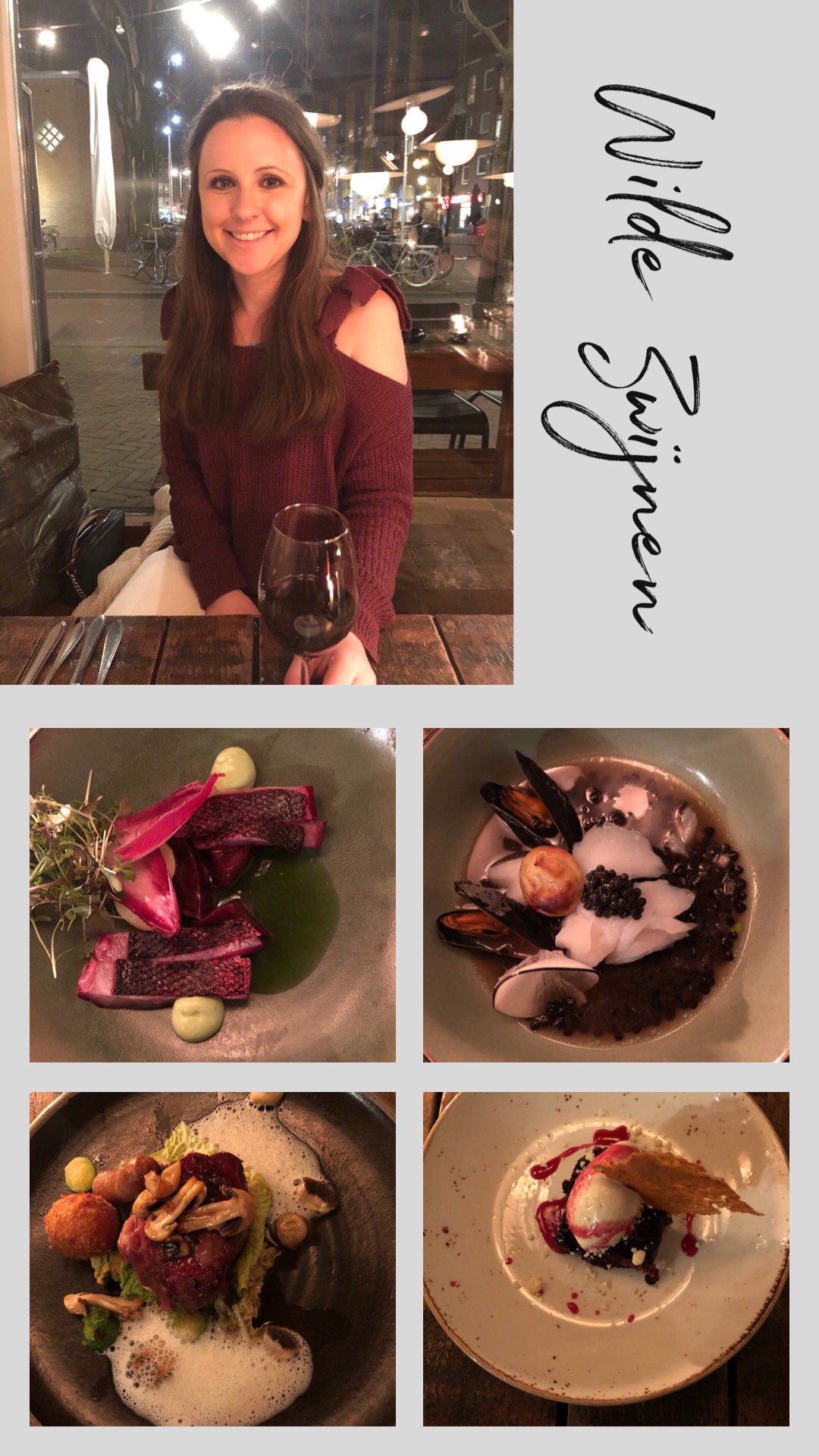 That night, we ate dinner at Wilde Zwijnen (Wild Boar) where we chose to be adventurous and order off of the chef’s surprise menu. We had no idea what would appear at our table throughout the four-course meal. There was one item I told Dan before our trip to Amsterdam that I just didn’t think I could stomach and that was herring. I was nervous we might get a herring dish during this “surprise” menu, but I told myself I had to go in with an open mind! The bottle of red wine we ordered helped me get to this “open mind” mentality. 😂