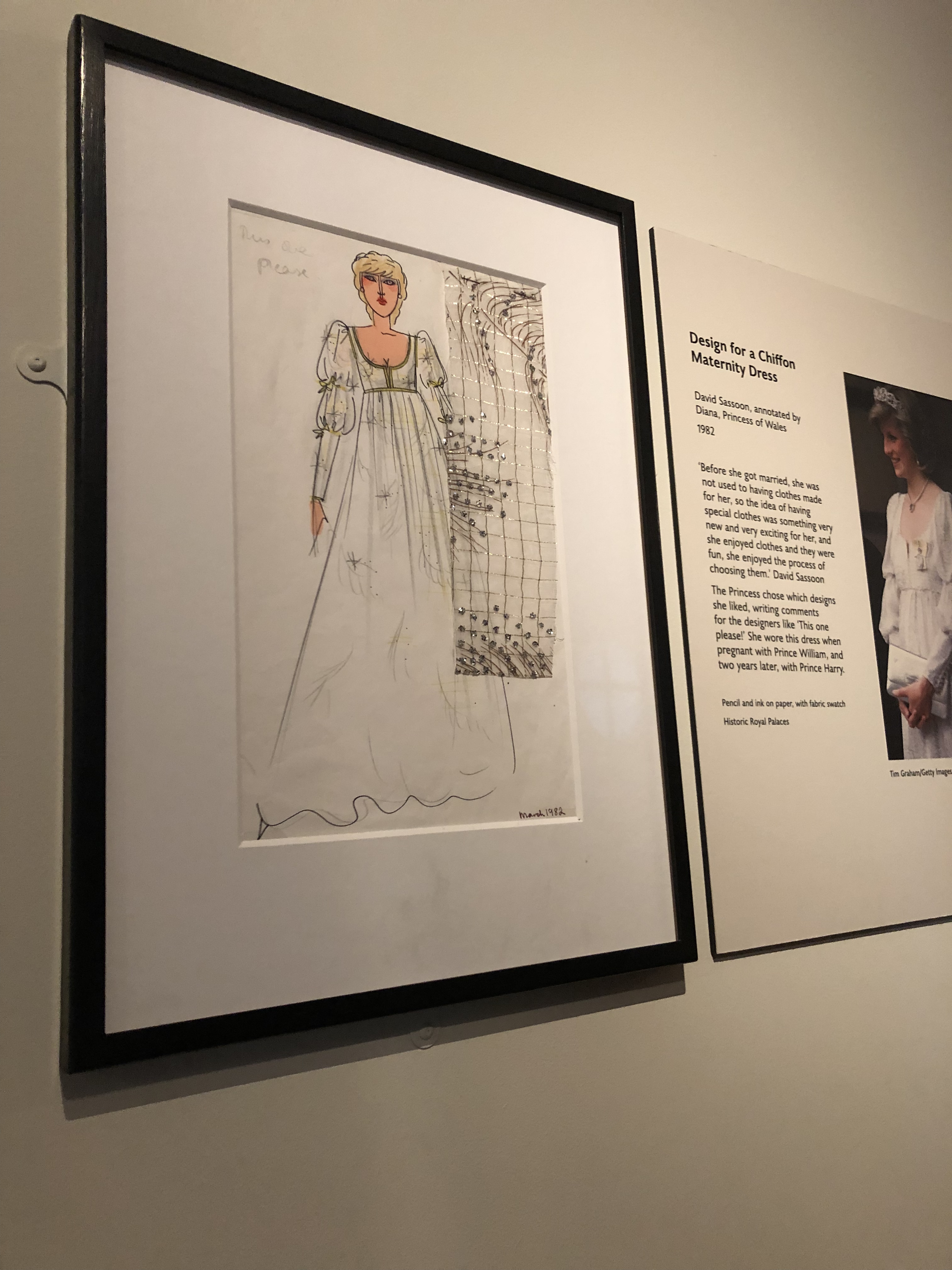 One of Princess Diana’s gowns as a sketch with her handwritten note “This one please.”Part of Kensington GardensAt one point Kyle and Dan ditched us for beer in the garden 😂We just so happened to tour Kensington on what would have been Princess Diana’s 58th birthday and the gates were decorated from people coming to pay their respects.